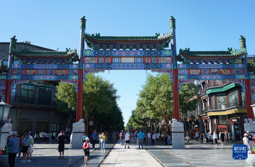 7月9日,人们在前门大街参观游览。