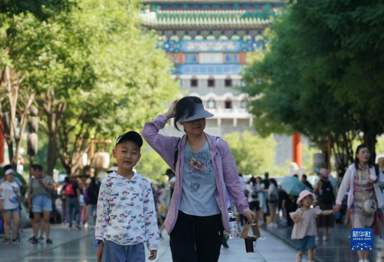 7月9日,人们在前门大街参观游览。 时值周末,许多市民和游人来到北京天安门广场、前门大街等景点参观游览,乐享暑期。 新华社记者 任超 摄