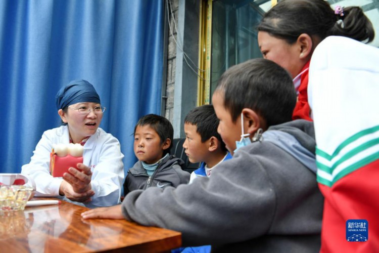 近日,上海市徐汇区牙病防治所的医务工作者来到西藏浪卡子县普玛江塘乡,为当地居民普及口腔保健知识并进行义诊服务。普玛江塘乡海拔5373米,是我国海拔最高的乡。