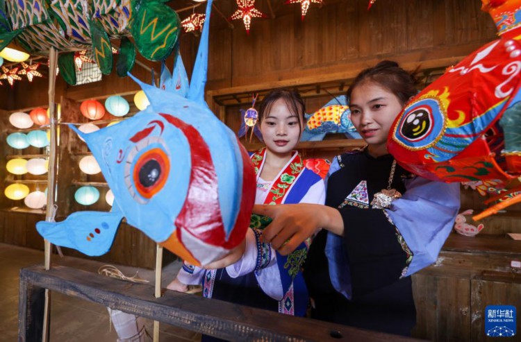 7月11日,游客在贵州省遵义市播州区乌江寨景区一家灯笼作坊选购手工灯笼。
