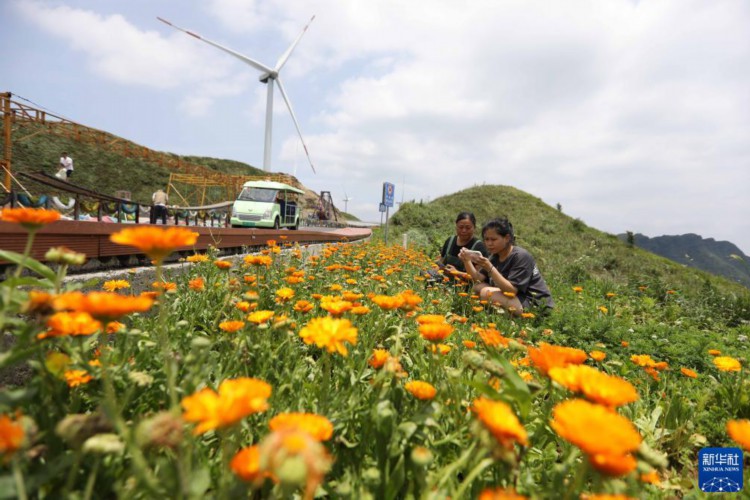 7月11日,游客在贵州省遵义市播州区洪关太阳坪景区游玩。