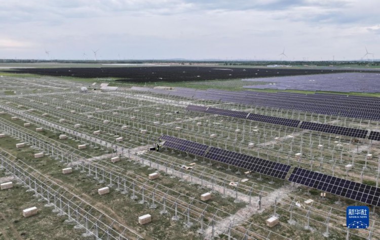这是张家口市康保县张纪镇一处施工中的光伏发电场(7月11日摄,无人机照片)。