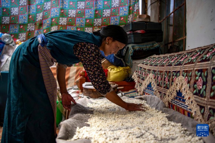 多尔格村村民达娃在家里制作奶渣(7月11日摄)。 近年来,海拔4700余米的西藏自治区那曲市班戈县普保镇多尔格村坚持走“产业发展,带动增收”的路子,在大力发展牧业的同时,该村的牧业经济合作社还在县城开办宾馆、商店、藏餐馆等。如今,多尔格村已成为远近闻名的富裕村。 新华社记者 姜帆 摄