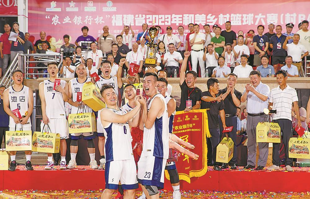 12日晚,福建省2023年和美乡村篮球大赛(村BA)迎来最高潮。在这个被称为“福建村BA”的舞台,来自泉州的两支球队在东埔村上演了一场强强对话。最终,池店队以73∶62击败了宝盖队,夺得冠军。