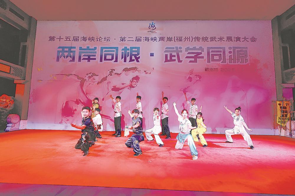 11日,为期4天的第十五届海峡论坛·第二届海峡两岸(福州)传统武术展演大会活动在福州拉开帷幕,两岸近百名武术爱好者齐聚一堂,以武会友,展演武术技艺,共享武术文化魅力。