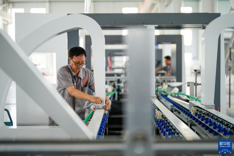 7月13日,河北省玉田县一家印刷包装机械制造企业的工人在生产线上工作。