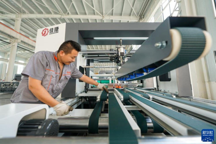 7月13日,河北省玉田县一家印刷包装机械制造企业的工人在调试产品。