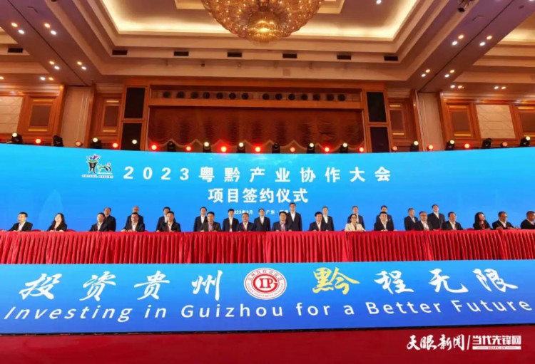 粤黔产业协作大会现场。贵州日报天眼新闻记者 杜朋城 摄 对接供需再发力,投资兴业再提升。贵州省出台《粤黔协作产业招商优惠政策》,优化营商环境,建立协作地区招商项目和东部意向企业“双清单”,开展项目招商,推动东部企业入黔。今年3月,贵州省党政代表团赴粤考察交流。期间,在产业协作大会上举行了招商引资签约仪式,现场集中签约项目23个,签约总金额493.1亿元。 从数据看成果,粤黔两地坚持资源互补,深化产业合作。2021年以来,贵州省新增落地投产企业1494个(次),实际到位投资额595.58亿元。共建产业园区99个,其中农业产业园69个。引导入园企业790个(次)投资239.08亿元。 山脉绵延,大海无垠。粤黔以更快节奏推进东西部协作,两地致力于产业发展,源源不断为贵州热土倾注来自东部的力量。 奋进新程,东西协作路更宽 进入夏秋,正是贵州农产品走俏广东市场的时节。
