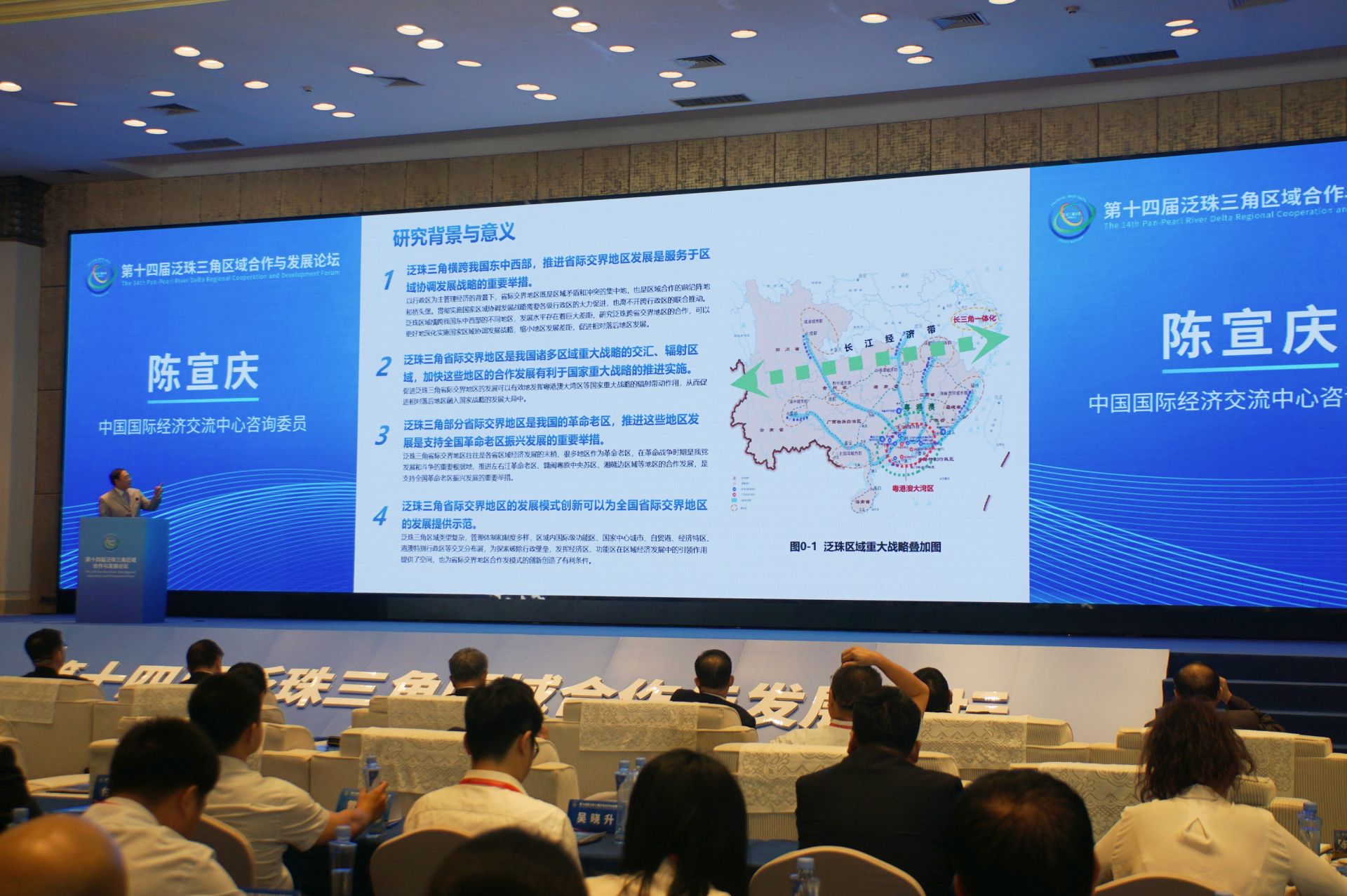 中国国际经济交流中心咨询委员陈宣庆现场发布《泛珠三角区域省际交界地区合作发展研究报告》。该报告从近年来泛珠三角省际交界地区作为推进泛珠合作的重要空间载体出发,为促进泛珠区域合作向纵深发展和国家重大战略有效实施提供了路径建议。