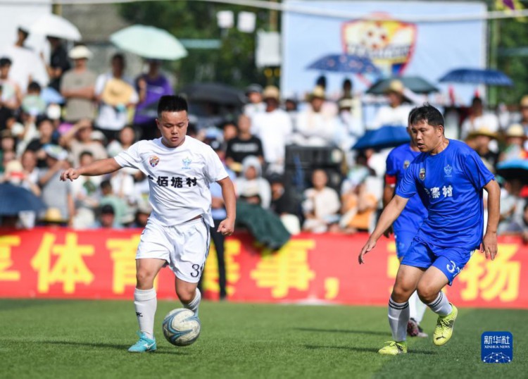 在今年的贵州省榕江县“村超”足球比赛中,20支参赛队的球员来自各行各业,有建筑工人、有卖菜小贩、有烧烤摊老板、有室内装修设计师、有教师、有学生……出于对足球运动的热爱,大家临时组成参赛队。穿上球衣,他们是为荣誉而战的足球队员;脱下球衣,他们是为生活奔忙的普通人。虽然很多人已步入中年,但他们仍在绿荫场上奋力奔跑,不知疲倦。