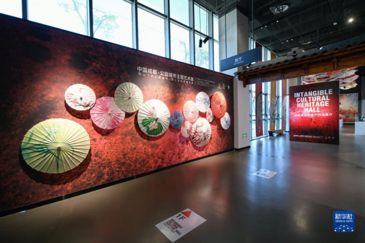 这是7月16日在大运村展览中心内拍摄的“中国成都·公园城市主题艺术展”一角。