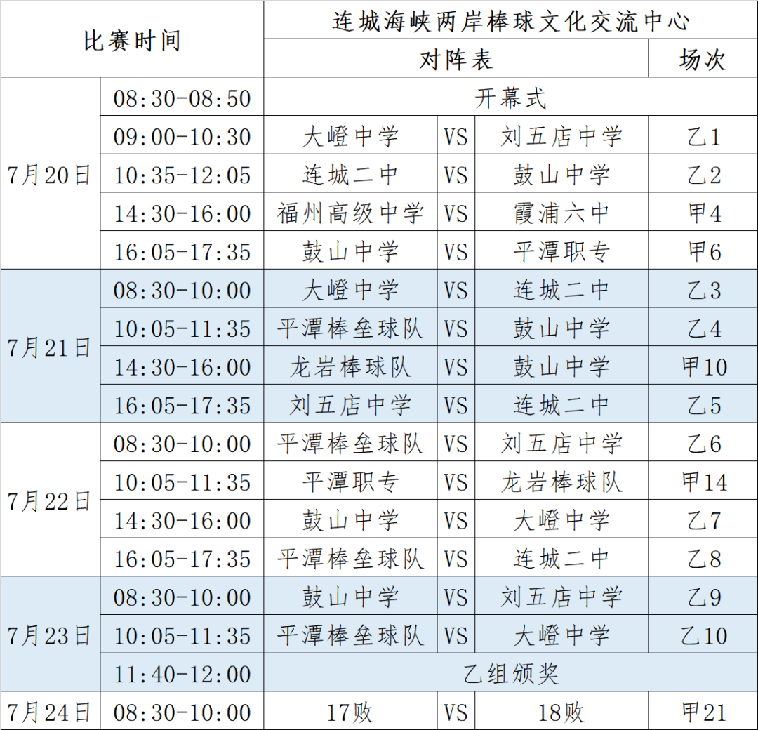 7月20日,2023年福建省青少年棒球锦标赛将在龙岩连城开赛啦!