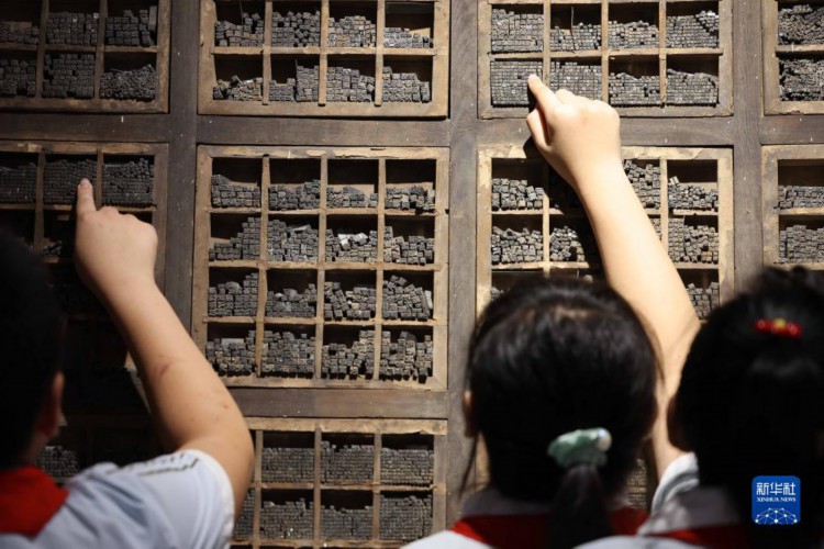 7月20日,在河北省沧州市吴桥县河北线装书博物馆,吴桥县新华小学学生学习了解铅字印刷工艺。 为丰富学生们暑期生活,河北省沧州市吴桥县开展了一系列暑期非遗研学体验活动,开放30余个非遗体验项目,让青少年面对面感受非遗魅力,促进非遗项目传承与发展。 新华社记者 骆学峰 摄
