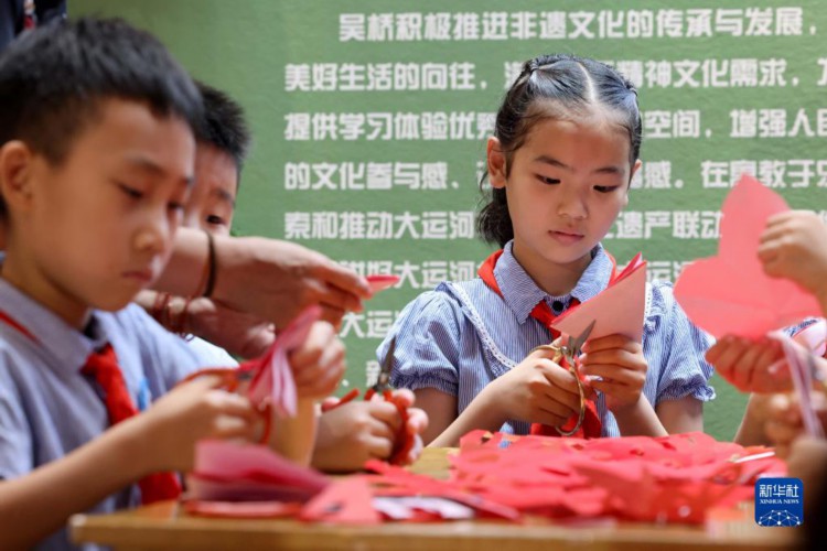 7月20日,在河北省沧州市吴桥县大运河文化展馆,吴桥县实验小学学生学习吴桥杂技剪纸技艺。 为丰富学生们暑期生活,河北省沧州市吴桥县开展了一系列暑期非遗研学体验活动,开放30余个非遗体验项目,让青少年面对面感受非遗魅力,促进非遗项目传承与发展。 新华社记者 骆学峰 摄 |