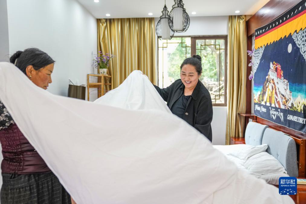 2023-07-23 15:10:36 来源:新华网 责任编辑:蔡秀明 作者:在结巴村的玛尼石民宿,村民次仁德吉(右)和姐姐一起整理房间(7月20日摄)。 西藏林芝市工布江达县错高乡结巴村位于巴松措国家森林公园内,结巴在藏语中是遗忘的意思。该村隐于雪山脚下、碧水湖畔,是一个以旅游业为支柱产业的村庄。上世纪八九十年代,结巴村的村民主要依靠伐木补贴家用。为保护林芝重要的生态安全屏障,当地政府转换经济发展思路,开始发展旅游业。于是,结巴村伐木场旧址上建起了森林防火驻防站,公路沿线砍伐一空的土地上也补栽了树木。 目前,结巴村一共有民宿和家庭旅馆48家,2023年上半年实现旅游收入约250万元。随着游客逐渐增多,村民们也尝到了吃旅游饭的甜头。结巴村周围的雪山高耸一如往昔,与过去不同的是,“遗忘的村落”已被唤醒,成为令四方游客向往的“打卡地”。 新华社记者 孙非 摄 |