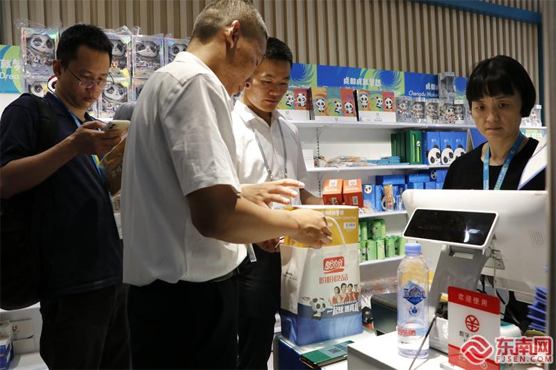 在成都大运会特许经营店购物,搭配购物袋上印有福建品牌“盼盼食品”的标识 东南网记者郑晓丹 摄