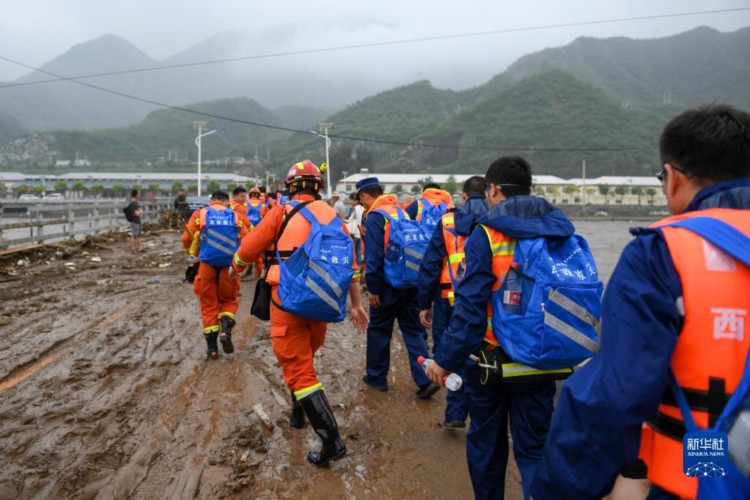8月1日,北京西城区消防救援支队来到门头沟区进行支援。 受台风“杜苏芮”影响,北京自7月29日开始连续强降雨,西部、西南部、南部遭遇特大暴雨。位于北京市西部的门头沟区部分区域发生山洪灾害,记者在一线直击救援现场。 新华社记者 鞠焕宗 摄