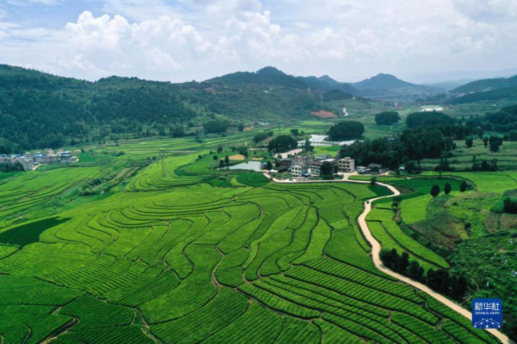这是8月1日拍摄的贵州省岑巩县水尾镇新场村杂交水稻制种基地(无人机照片)。
