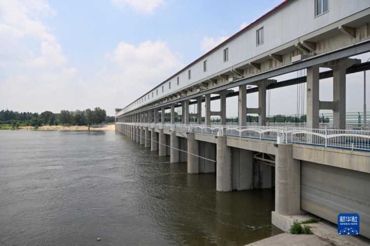 8月2日拍摄的天津市独流减河进洪南闸(无人机照片)。 当日,记者来到天津市独流减河进洪闸水利枢纽了解到,截至8月2日16时,枢纽站上游监测水位5.93米,来水上涨1.2米。目前枢纽站的闸门全部开启敞泄上游来水,为天津市区及雄安新区防汛工作疏解压力。 独流减河进洪闸位于海河流域大清河、子牙河与独流减河交汇处。目前,独流减河进洪闸水文站工作人员根据上游实际来水量,安排人员每日两次进行水文统计与监测,根据实际水位情况实时调控闸门开启程度,保障上游来水平稳进入独流减河。 新华社记者 孙凡越 摄