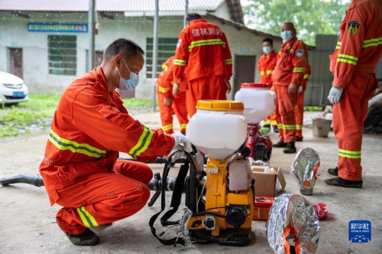 8月2日,在桃江县桃花江国有林场,护林员在调试治理竹蝗的设备。