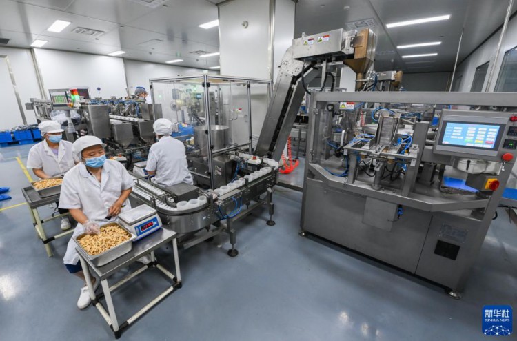 这是8月3日在龙岗镇拍摄的杭州姚生记食品有限公司现代化数字工厂的坚果炒货自动化生产车间。 8月2日至8月5日,2023中国国际坚果大会暨首届临安坚果食品投资贸易洽谈会在浙江省杭州市临安区召开,来自20多个国家和地区的境外企业及国内外坚果食品行业的龙头企业、贸易商、专业协会等参加活动,本次大会包括展销会、贸易洽谈会、参观龙岗镇相关坚果企业等内容。 坐落在山核桃主产区的杭州市临安区龙岗镇作为中国“坚果重镇”,近年来,通过数字化改革、出台人才优惠政策、开展“千名干部助千企”活动等方式,从“小坚果、初加工、单一产业”向“大食品、精制造、多元业态”转型升级,致力打造百亿级食品产业集群。 新华社记者 徐昱 摄