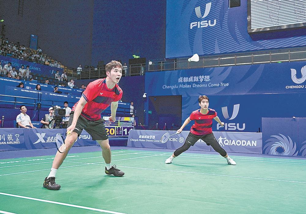 8月2日,成都大运会羽毛球混合团体比赛在双流体育中心体育馆进行了半决赛和决赛的争夺。击败泰国队晋级决赛后,中国队在长达四个多小时的五场鏖战后,以2∶3不敌中国台北队,收获一枚银牌。来自福建的何济霆、韩悦分别镇守混双和女单,两人均是一日双赛,全部取胜。