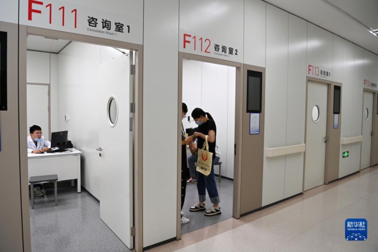 8月8日,天津市第一中心医院的医生在健康广场进行义诊。 当日,天津市第一中心医院健康广场在水西院区正式启用。据了解,医院通过设立健康广场,为开展健康宣教、无偿献血、常态化义诊等提供了固定场所,在便民惠民的同时,进一步突出公立医院的公益性。 新华社记者 李然 摄