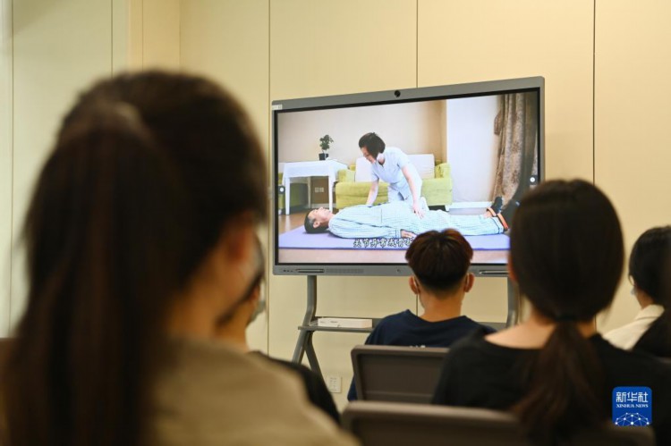8月8日,天津市第一中心医院的医生在健康广场进行急救知识宣教。 当日,天津市第一中心医院健康广场在水西院区正式启用。据了解,医院通过设立健康广场,为开展健康宣教、无偿献血、常态化义诊等提供了固定场所,在便民惠民的同时,进一步突出公立医院的公益性。 新华社记者 李然 摄