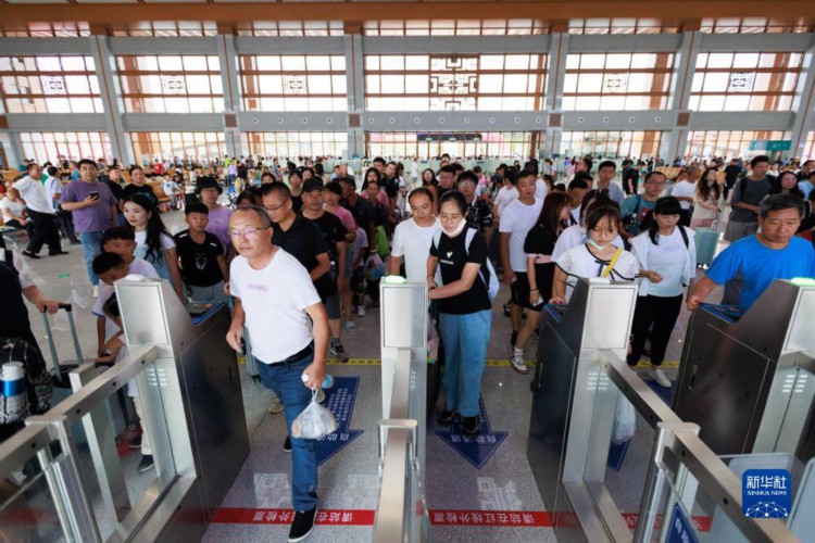 8月8日,旅客在荔波站内检票上车。 当日,随着贵阳北至荔波的D6171次列车驶出贵阳北站,贵阳至南宁高速铁路贵阳至荔波段正式开通运营。据了解,贵南高铁是我国“八纵八横”铁路网包头到海南铁路通道的重要组成部分,线路全长482公里,设计时速350公里,贵阳至荔波最快57分钟可达。 新华社记者 刘续 摄
