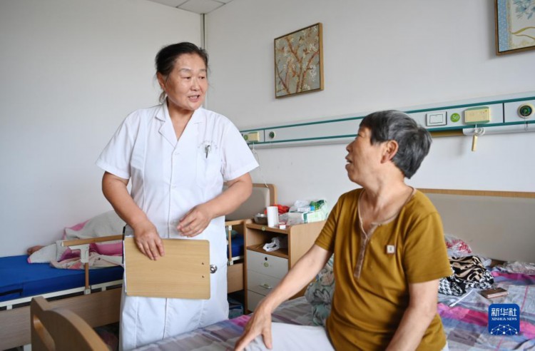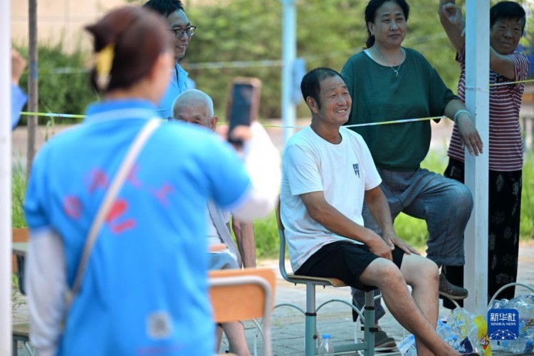 8月9日,医务人员在海福祥养老护理院安置点内叮嘱老人用药。 据了解,东淀蓄滞洪区启用后,天津市静海区共集中安置了2000余名群众。连日来,静海区全力保障转移群众在集中安置点的生活。 新华社记者 李然 摄