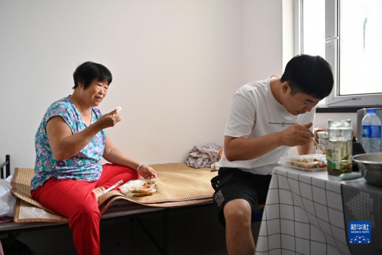 8月9日,转移群众在亲和儒园安置点内吃饭。 据了解,东淀蓄滞洪区启用后,天津市静海区共集中安置了2000余名群众。连日来,静海区全力保障转移群众在集中安置点的生活。 新华社记者 李然 摄