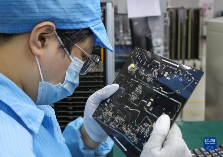质检员在佛山照明高明生产基地的车灯生产车间检测产品(8月9日摄)。