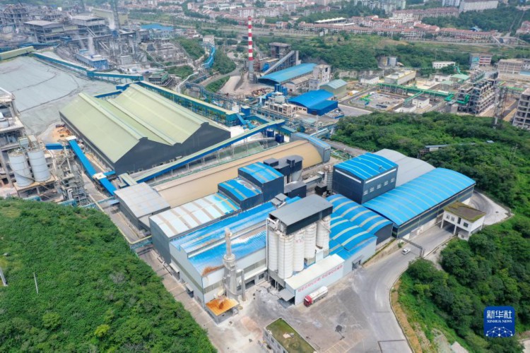 8月14日拍摄的正在进行磷石膏处理的贵州磷化绿色环保产业有限公司(无人机照片)。