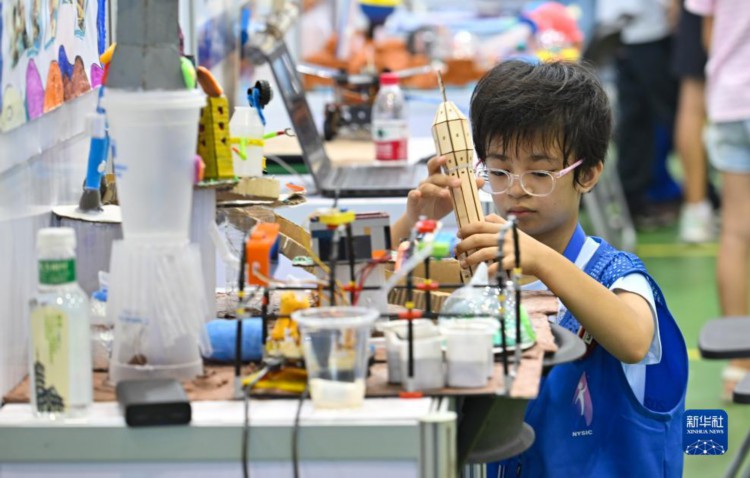 8月14日,福建赛区的选手在进行航天创意赛。 当日,以“仰望星空 成就梦想”为主题的2023年全国青少年航天创新大赛总决赛在海南省文昌市开幕,来自全国25个赛区的近3000名参赛选手,围绕航天创意设计、太空探测、航天科学探究与创新三个竞赛单元及载人航天主题专项赛展开为期3天的角逐。 新华社记者 郭程 摄