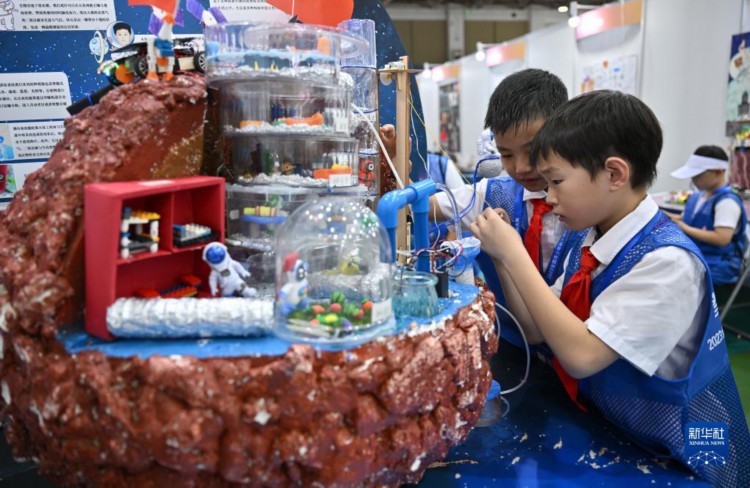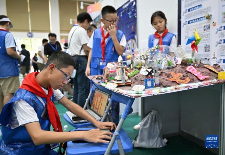 这是8月14日拍摄的航天创意赛现场。 当日,以“仰望星空 成就梦想”为主题的2023年全国青少年航天创新大赛总决赛在海南省文昌市开幕,来自全国25个赛区的近3000名参赛选手,围绕航天创意设计、太空探测、航天科学探究与创新三个竞赛单元及载人航天主题专项赛展开为期3天的角逐。 新华社记者 郭程 摄