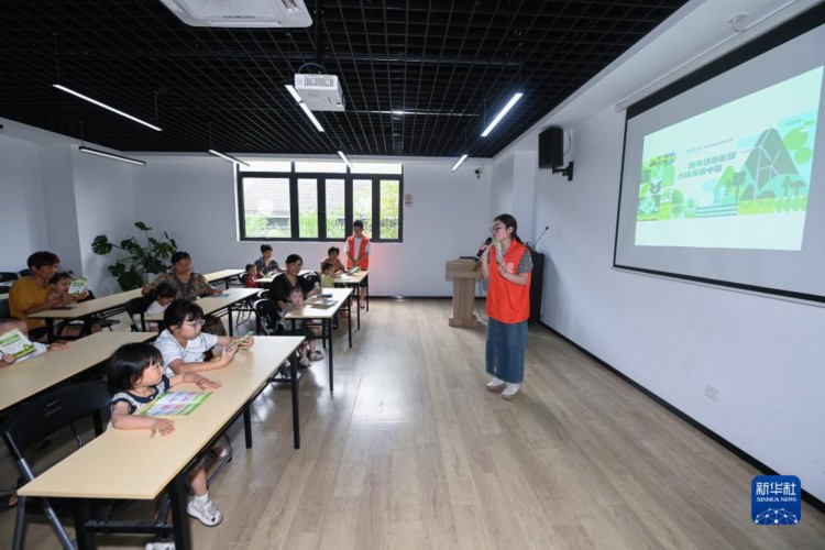 8月15日,在织里镇港西村文化礼堂内,党员志愿者给孩子们普及生态保护知识。 近年来,位于太湖南岸的浙江省湖州市吴兴区织里镇多措并举推进生态建设。今年以来,织里镇新建生态公园3座,新增造林面积226亩,铺设生态护岸3800米。 新华社记者 徐昱 摄 |