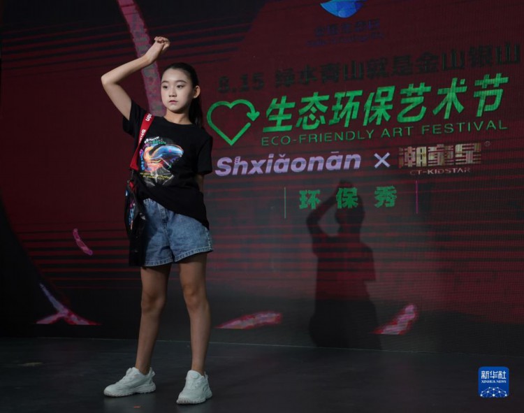 8月15日,小模特在艺术节开幕式上展示以海洋生物多样性保护为主题的服装。