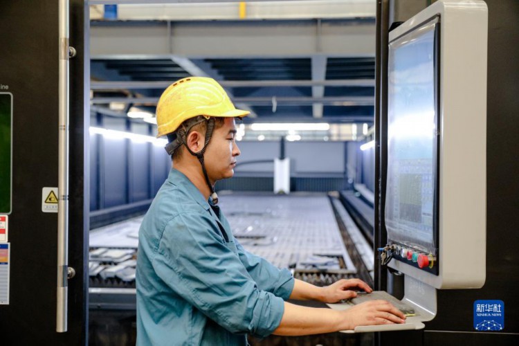 8月15日,在河北衡水高新技术产业开发区一家智能装备制造企业,工人在操作激光切割机。