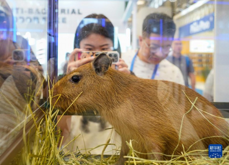 8月16日在第25届亚洲宠物展览会上拍摄的水豚。