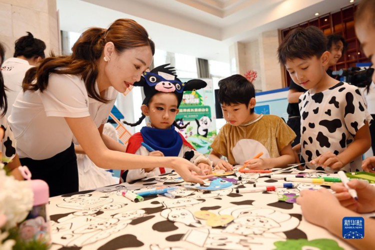 8月17日,小朋友在启动仪式前参加环保绘画。 当日,中国乳制品工业协会、中国绿化基金会联合爱心企业,在北京共同启动自然滋养成长营项目。该项目通过幼儿园入园课程活动、培训和直播、交互小程序等,鼓励孩子树立可持续发展意识,在生活中践行环保行动,共同构建人与自然和谐发展的健康中国。 新华社记者 金良快 摄 |