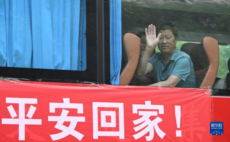 8月20日,在天津市西青区赤龙南街道,准备回家的村民在车内挥手。 当日,天津市静海区东淀蓄滞洪区37000余名转移安置人员全部返回台头镇、独流镇、王口镇等地。 8月19日14时,天津市水文水资源管理中心将大清河洪水橙色预警降级为黄色预警,东淀蓄滞洪区形势目前总体平稳,当地生活秩序正逐渐恢复正常。 新华社记者 孙凡越 摄