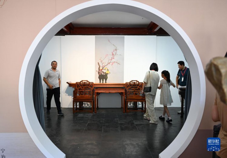 8月21日,观众参观展出的家具。 当日,“榫卯里的东方智慧——国家级非物质文化遗产传统家具制作技艺精品展”在北京恭王府博物馆开幕。本次展览分为“东方智慧”“京华甲第”“苏州造物”“岭表华章”“续古为潮”五个单元,集中展示国家级非物质文化遗产代表性传承人的家具制作技艺代表作品,同时展示恭王府博物馆馆藏相关明清家具。 新华社记者 金良快 摄
