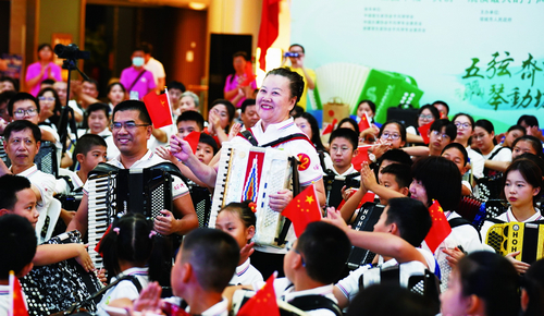 8月19日,2023新疆塔城手风琴文化艺术节厦门分会场活动启动,来自福建、广东两省的数百名手风琴爱好者齐聚集美区,参与五城十国挑战上海大世界基尼斯纪录“规模最大手风琴合奏活动(线上+线下)”获得成功,厦门本地师生120人获得荣誉证书和徽章。