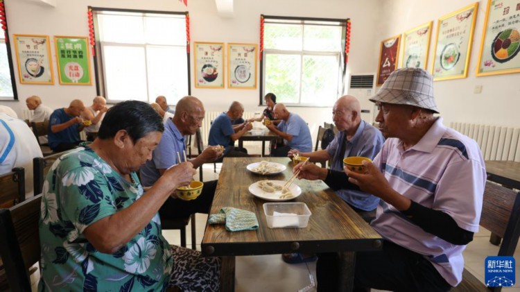 8月22日,老人在青县曹寺镇曹寺村的孝老食堂用餐。 针对农村养老难现状,河北省青县创新农村养老服务模式,大力推进“孝老食堂”建设,充分利用闲置校舍、厂房、幸福院等解决用房问题,利用社会力量、集体收入等为食堂持续运行提供保障,通过招募志愿者保障人力。近年来,青县通过探索新养老模式,借助构筑“公办养老打基础、社会养老促提升、社区养老全覆盖、农村养老保兜底”的养老服务体系,打造群众身边的“养老院”。 新华社记者 卢烨 摄