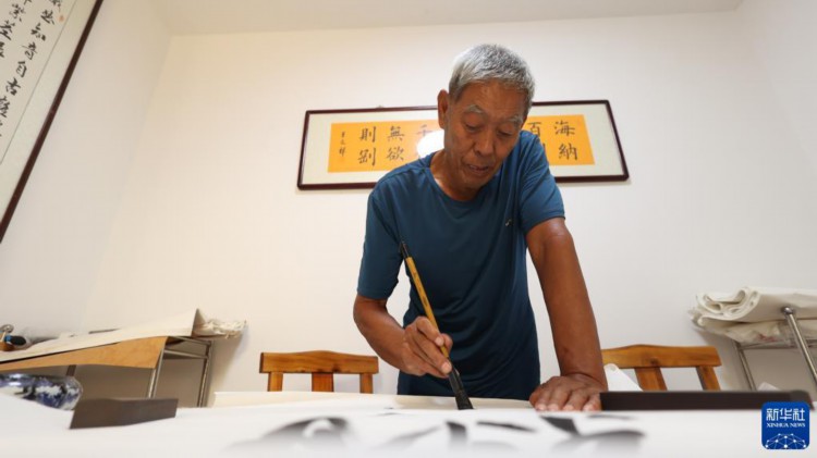 8月22日,老人在青县曹寺镇曹寺村的孝老食堂练习书法。 针对农村养老难现状,河北省青县创新农村养老服务模式,大力推进“孝老食堂”建设,充分利用闲置校舍、厂房、幸福院等解决用房问题,利用社会力量、集体收入等为食堂持续运行提供保障,通过招募志愿者保障人力。近年来,青县通过探索新养老模式,借助构筑“公办养老打基础、社会养老促提升、社区养老全覆盖、农村养老保兜底”的养老服务体系,打造群众身边的“养老院”。 新华社记者 卢烨 摄