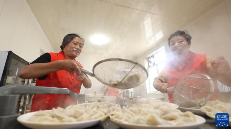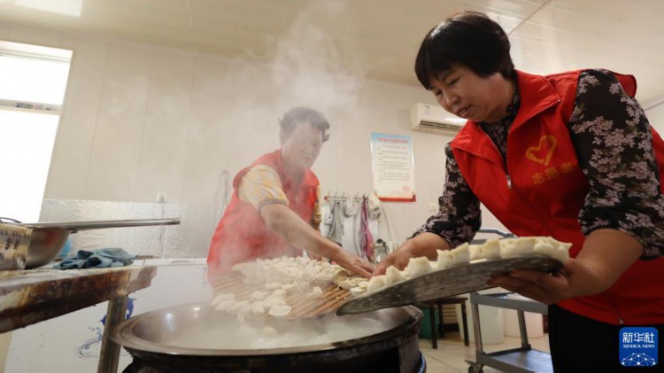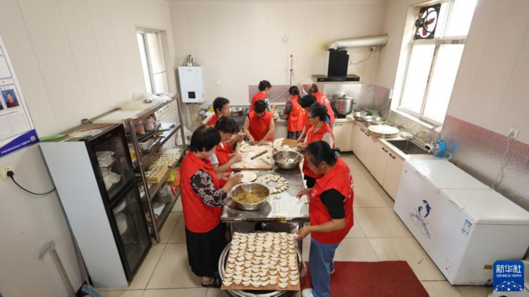 8月22日,青县金牛镇大鹁鸽留村孝老食堂的志愿者准备餐食。 针对农村养老难现状,河北省青县创新农村养老服务模式,大力推进“孝老食堂”建设,充分利用闲置校舍、厂房、幸福院等解决用房问题,利用社会力量、集体收入等为食堂持续运行提供保障,通过招募志愿者保障人力。近年来,青县通过探索新养老模式,借助构筑“公办养老打基础、社会养老促提升、社区养老全覆盖、农村养老保兜底”的养老服务体系,打造群众身边的“养老院”。 新华社记者 卢烨 摄