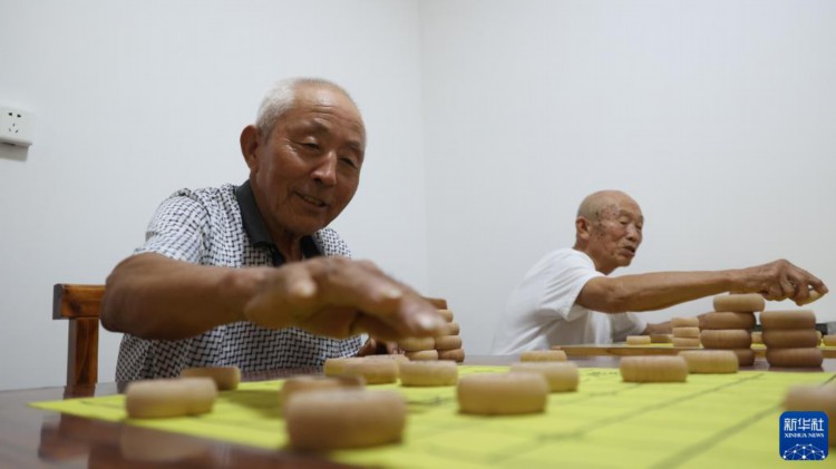 8月22日,老人在青县曹寺镇曹寺村的孝老食堂与志愿者下象棋。 针对农村养老难现状,河北省青县创新农村养老服务模式,大力推进“孝老食堂”建设,充分利用闲置校舍、厂房、幸福院等解决用房问题,利用社会力量、集体收入等为食堂持续运行提供保障,通过招募志愿者保障人力。近年来,青县通过探索新养老模式,借助构筑“公办养老打基础、社会养老促提升、社区养老全覆盖、农村养老保兜底”的养老服务体系,打造群众身边的“养老院”。 新华社记者 卢烨 摄