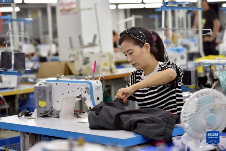 8月29日,工人在河北省威县姜七里村一家服饰厂加工服装。