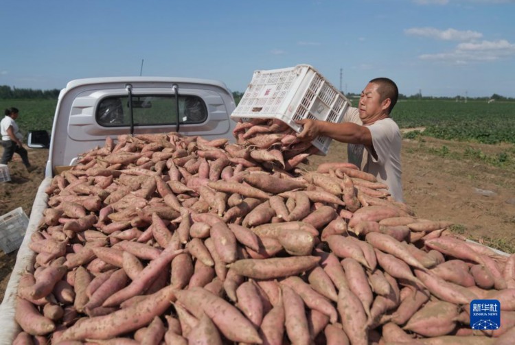 8月28日,滦州市九百户镇一家鲜食红薯种植合作社的社员在田间收获烟薯。 近年来,河北省滦州市积极引导群众根据当地土质特点,采用“滴灌+双层覆膜”等技术种植烟薯、蜜薯等鲜食红薯,促进农业增产,农民增收。据介绍,今年该市鲜食红薯种植面积达1.7万亩。 新华社记者 杨世尧 摄