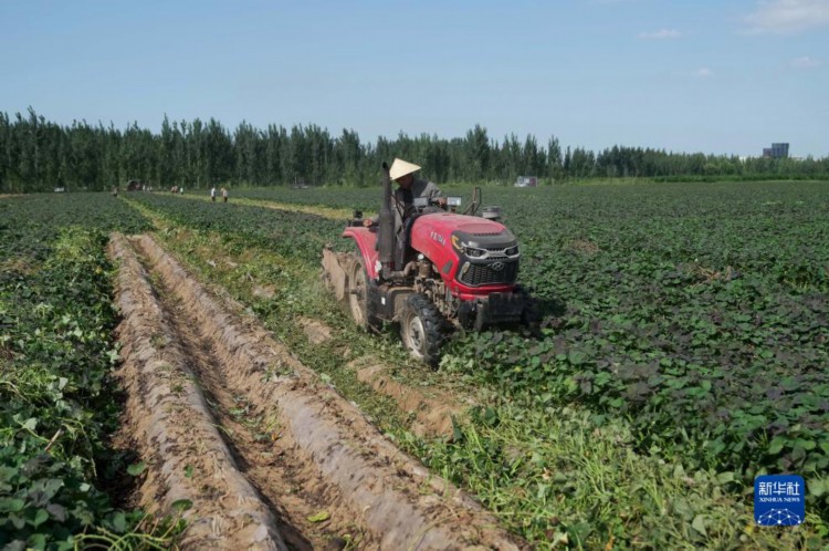 8月28日,滦州市九百户镇一家鲜食红薯种植合作社的农机手驾驶农机在田间粉碎红薯秧,准备收获红薯。 近年来,河北省滦州市积极引导群众根据当地土质特点,采用“滴灌+双层覆膜”等技术种植烟薯、蜜薯等鲜食红薯,促进农业增产,农民增收。据介绍,今年该市鲜食红薯种植面积达1.7万亩。 新华社记者 杨世尧 摄